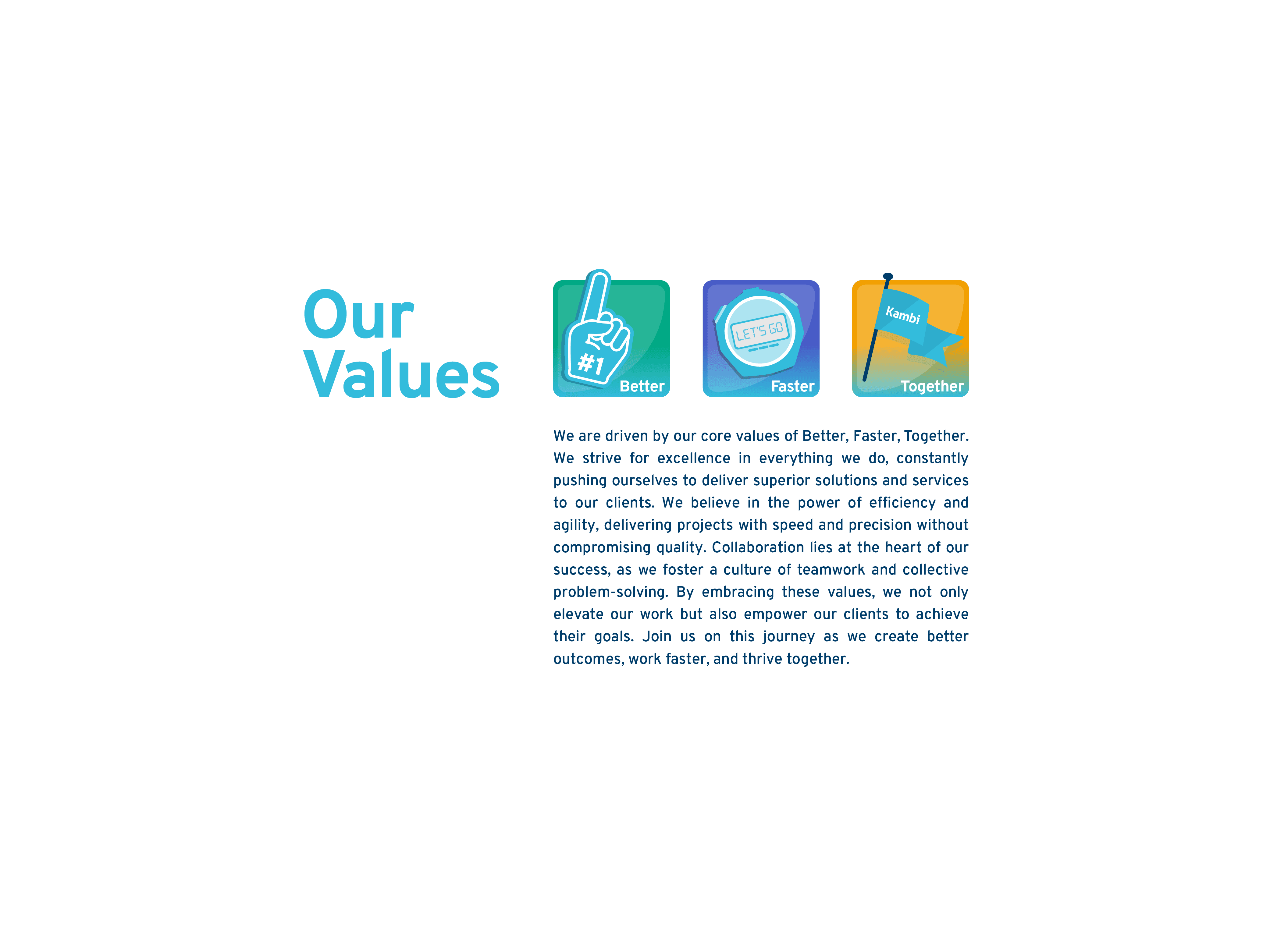 A set of custom illustrations created for Kambi's internal values campaign. Each asset was hand-sketched through multiple concept rounds before being refined into polished digital stickers — bringing a playful, energetic feel to the brand's core values through iconography that's bold, approachable, and distinctly Kambi.
